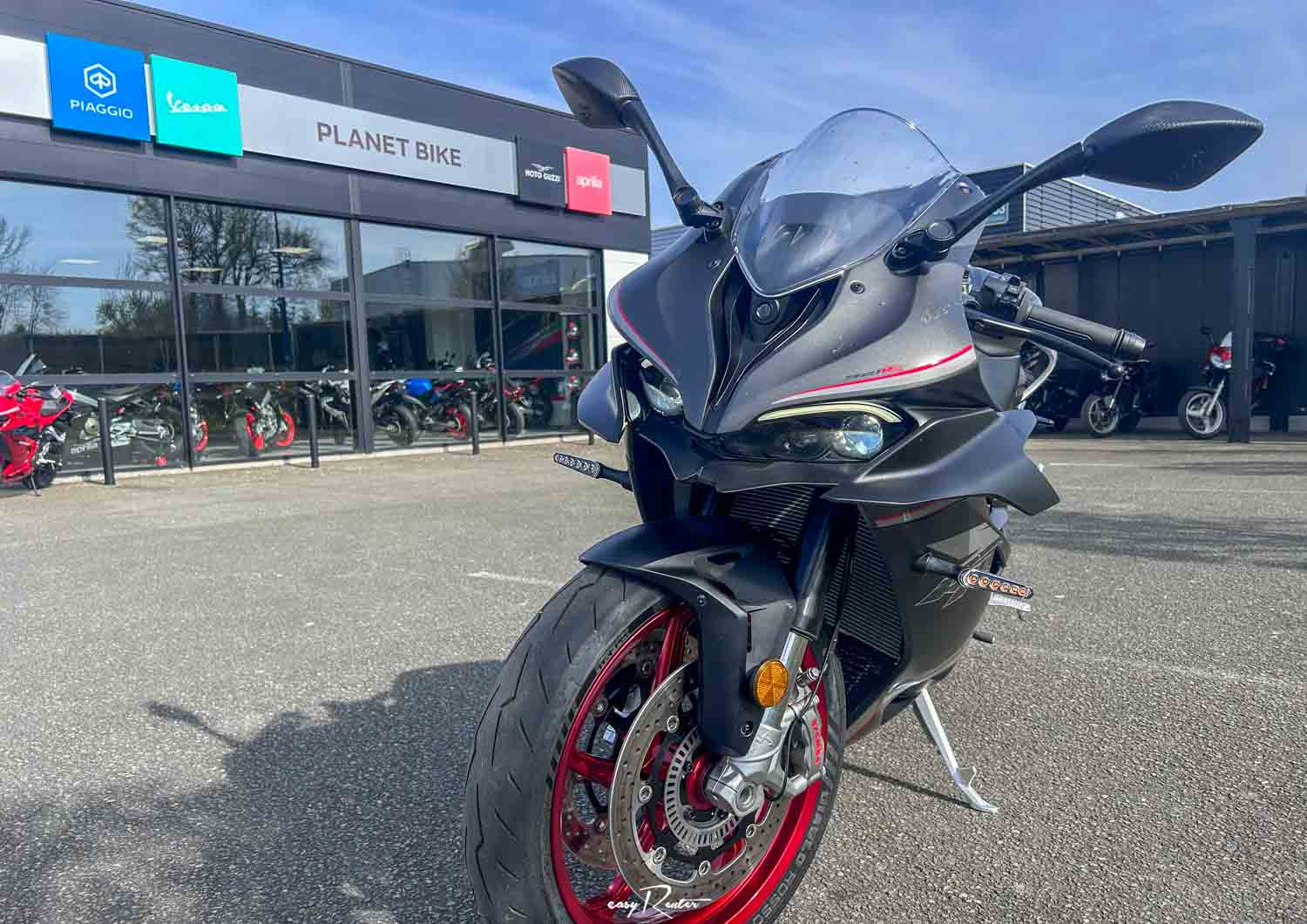 I rented an Aprilia 457 from Planet Bike in Mayenne. The bike was perfect and the service was excellent. (Translated from French)