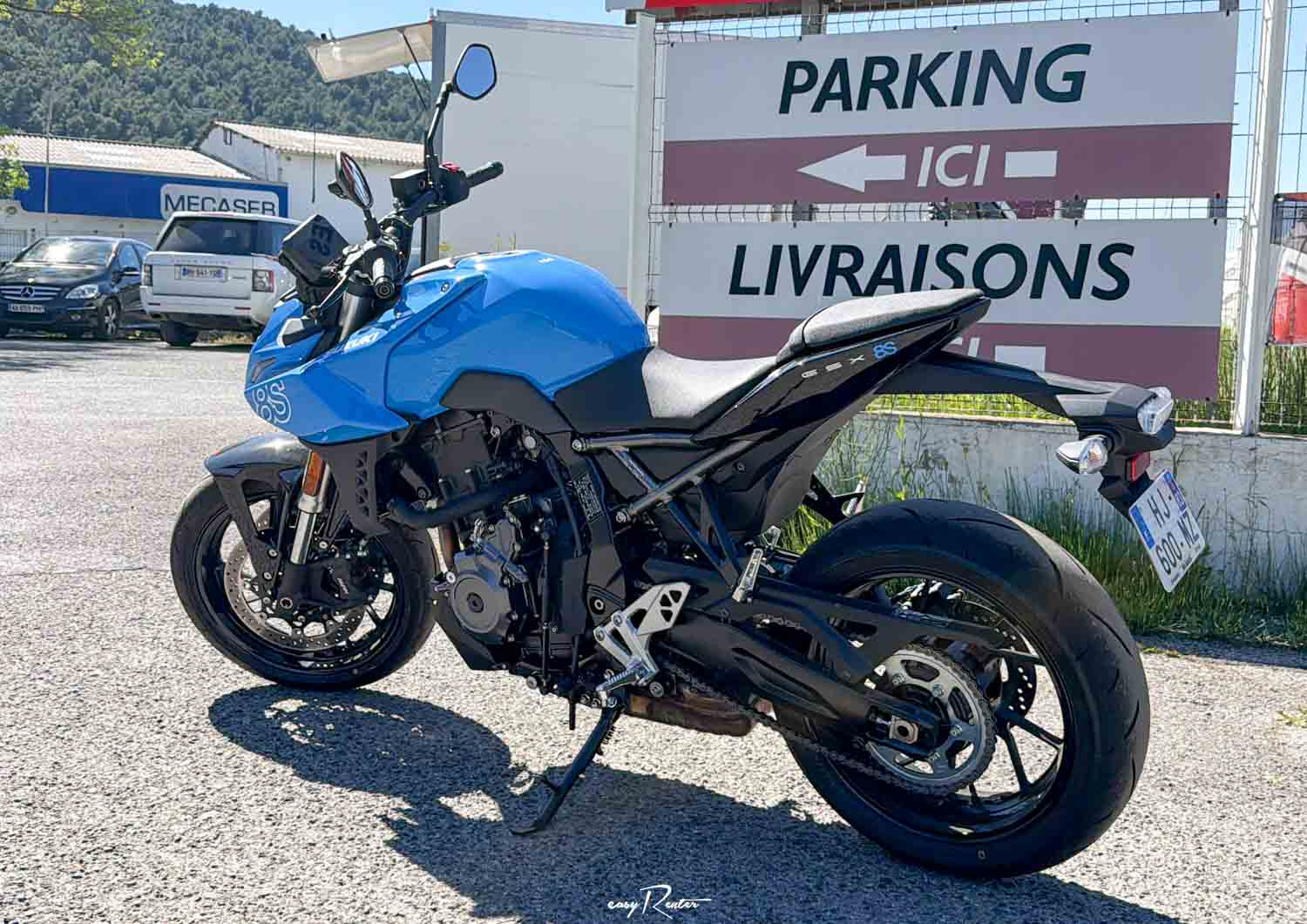 Système de réservation pratique et clair. Très rapide sur place pour récupérer et rendre la moto, concession Suzuki accueillante. La GSX 8S est en très bon état et bien équipée (au niveau esthétique et shifter up). Même bridée, c’est suffisant pour rouler à deux dans les cols jusqu’à la mer et dans le Verdon, bon moteur, bien maniable. Seulement 2200km au compteur au moment de la location. Il vaut mieux la prendre seule qu’avec un passager, sinon gare au confort du passager (assise et dos) voire du conducteur qui se retrouve beaucoup sur les poignets.